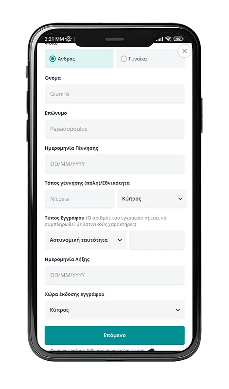 - Αριθμός ταυτότητας ή διαβατηρίου