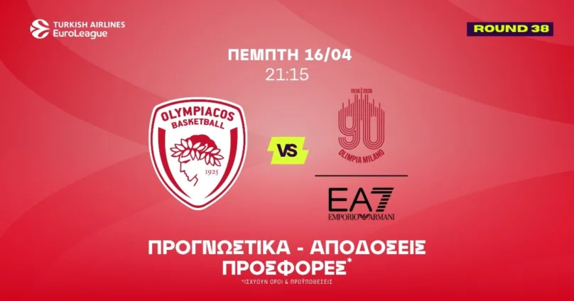 Προγνωστικά Ολυμπιακός – Αρμάνι (16/04/2026): Προγνωστικά Euroleague με τις καλύτερες επιλογές στη στήλη του Betmarket.com.cy.