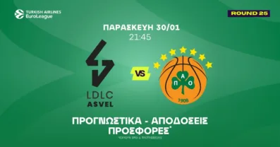 Βιλερμπάν – Παναθηναϊκός Προγνωστικά: Ανάλυση και σημεία στα προγνωστικά Euroleague από αγώνα που δίνει σήμερα (30/01/2026, 21:45) το «τριφύλλι» στην Λυών.