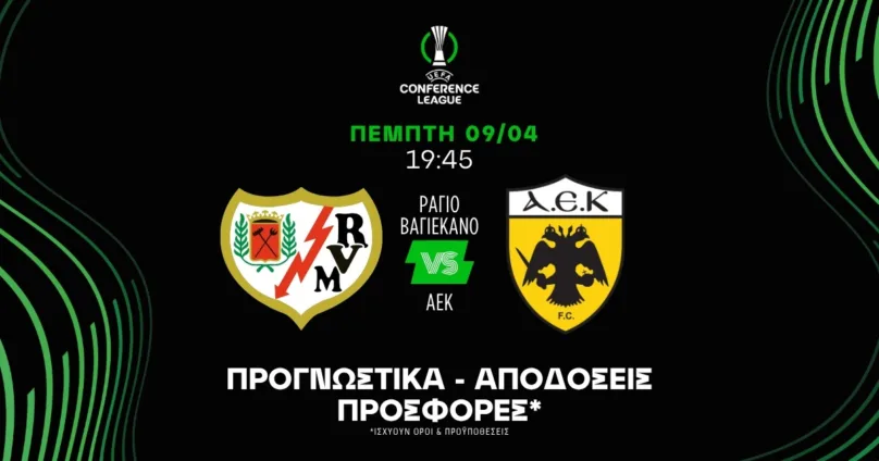Προγνωστικά Ράγιο Βαγιεκάνο – ΑΕΚ (09/04/2026): Πρώτη αναμέτρηση για τα προημιτελικά του Conference League. Μεγάλη πρόκληση για την ΑΕΚ που μετά τη νίκη στο ντέρμπι επί του Ολυμπιακού θέλει να φτάσει όσο πιο μακριά μπορεί στην Ευρώπη. Τι ξεχωρίσαμε στα προγνωστικά Conference League;