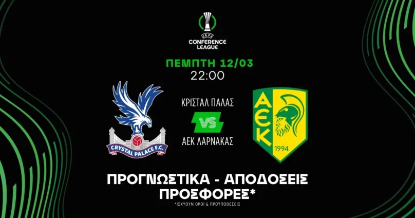 Αναμέτρηση για την φάση των «16» του Κόνφερενς Λιγκ με την Κρίσταλ Πάλας να υποδέχεται την ΑΕΚ σε ένα ζευγάρι με ακλόνητο φαβορί του Άγγλους. Πάμε να δούμε τα προγνωστικά του Κόνφερενς Λιγκ σήμερα (12/03/26) για το Κρίσταλ Πάλας – ΑΕΚ και τις προτάσεις μας.